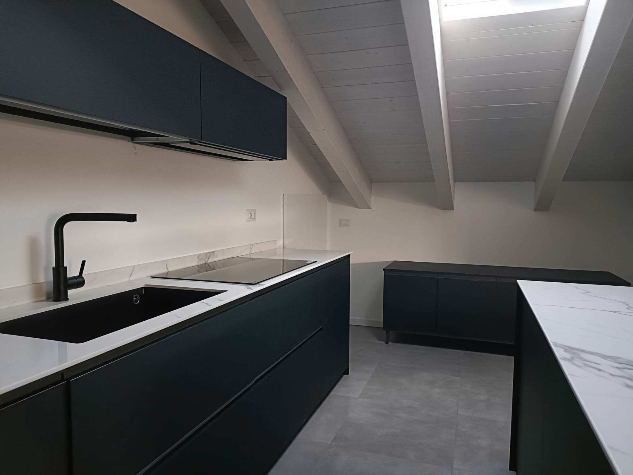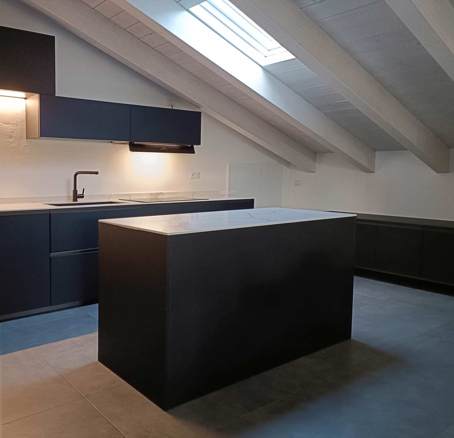 Un progetto che interpreta il carattere contemporaneo di una mansarda nell’hinterland milanese, dove cucina e living si integrano in un ambiente unico, essenziale e coerente con le proporzioni dello spazio.